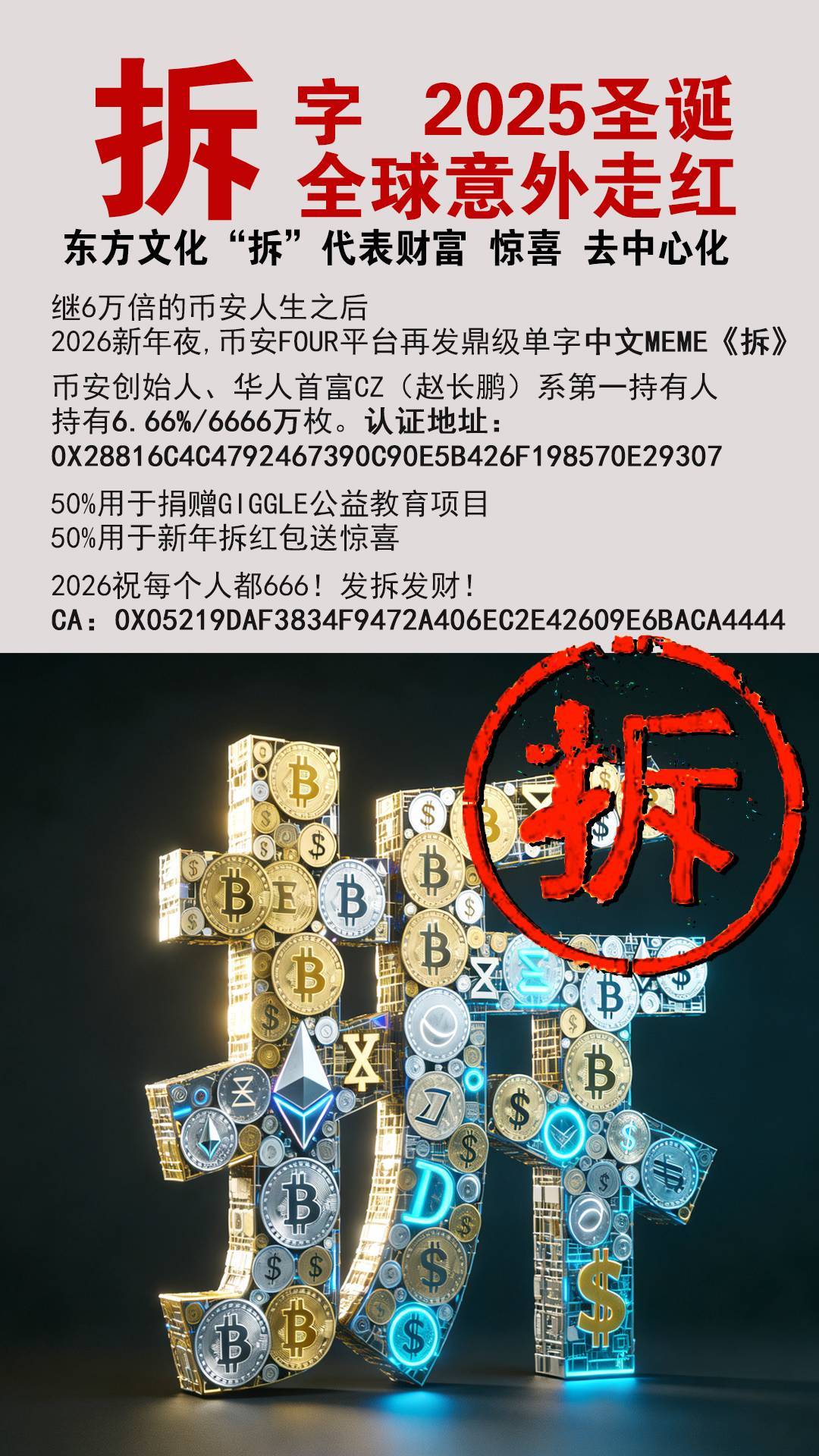 不展开,还是说回拆这个字是怎么成为2026首个网络热词,赵长鹏在发完币安人生后,开始又憋大招!怎么既能制造下一个万倍的数字货币,又能将中国文化面向全球输出呢?!他想到了“拆”这个字,一个很多人还没注意到的超级IP!