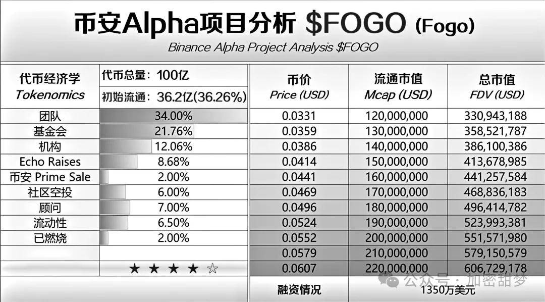 目前盘前价0.06U,对应流通市值2.2亿,FDV 6亿,b安 Alpha 成本为0.035U,对应流通市值1.3亿,FDV 3.5亿,对应流通市值4000万,FDV 1.1亿, 暂无合约地址,无池子价参考