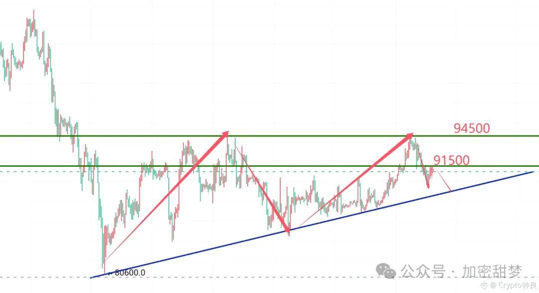 日内操作上围绕上方压制91500跟92800以及94000这里高空为主,下方支撑关注90500跟89000和88000一线。