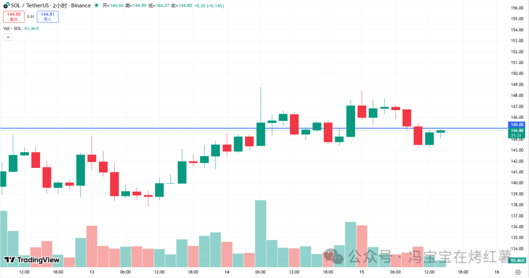 sol今日关键位145,若突破并守稳则短线回调可能结束,上行压力关注148、152、156附近。