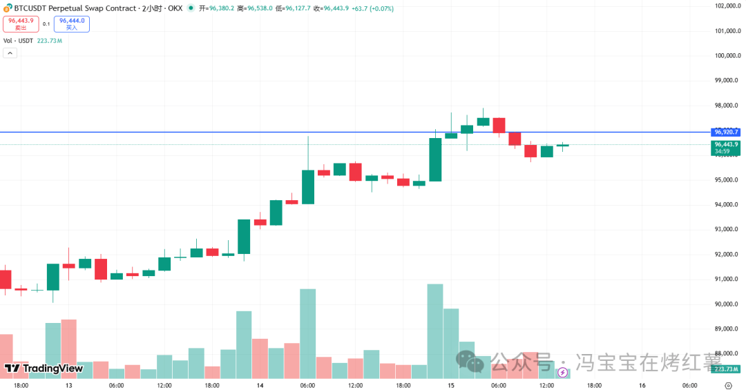 若无法收于96920上方,则回调或延续,下方支撑关注95700、94660、93510附近。