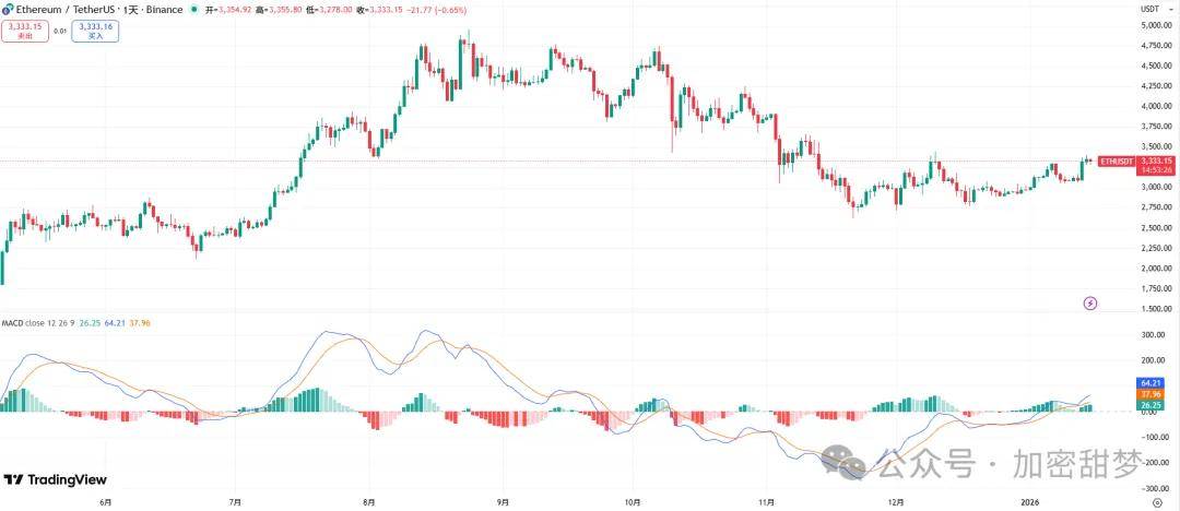 比特币从日线级别来看,近期K线震荡上行,已突破站稳中期均线,其MACD也同步分散上扬重回零轴,走势不断变强,后续将会去冲击MA120,即10万大关,10才是行情的分水岭,能不能迎来反转,就看能不能突破站稳10万 。