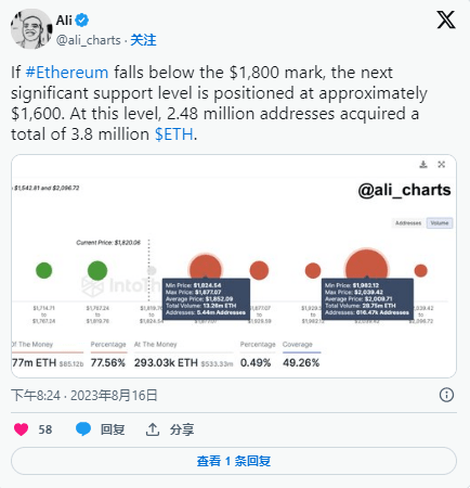 目前,以太坊的下一个重要支持是 1,600 美元,近 248 万个地址已获得总计 380 万个 ETH。