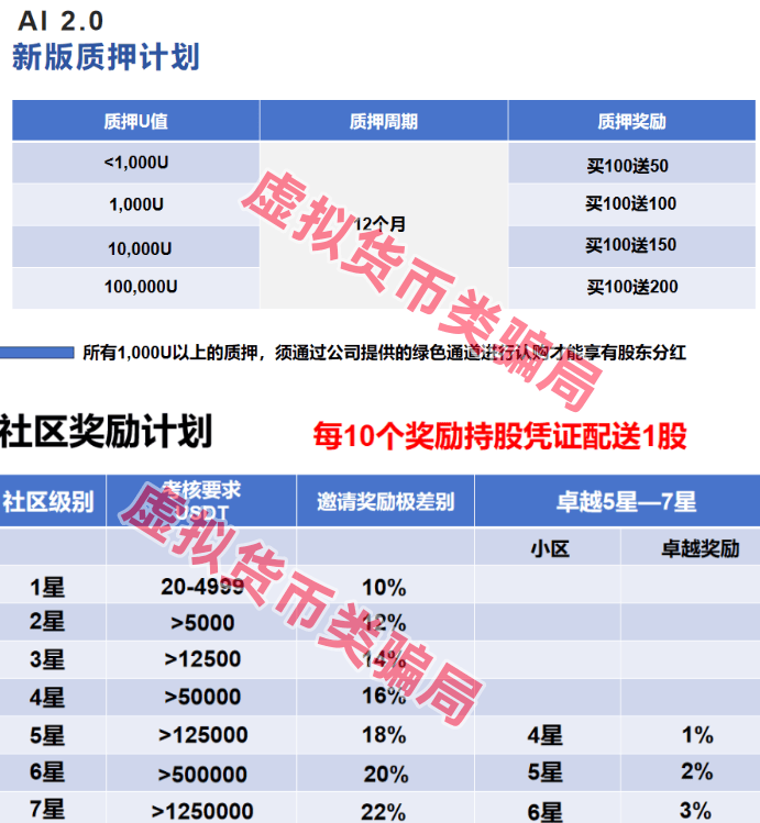 据网友反馈,该项目打着“区块链”的旗号,发行虚拟货币,参与者通过质押可获得静态收益,还可以获得机器人分红、股票等收益,发展下线可获得推广奖、极差奖、卓越奖等动态收益。该项目通过虚拟货币交易,涉嫌传销、诈骗、洗钱等违法行为。