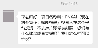 投资虚拟货币,年化收益率高达500~800%!看到这样的宣传,你是否心动了呢?有网友反馈,经朋友介绍参与该项目后,因不发展下线,他的账户已经被封停,无法操作,损失惨重!