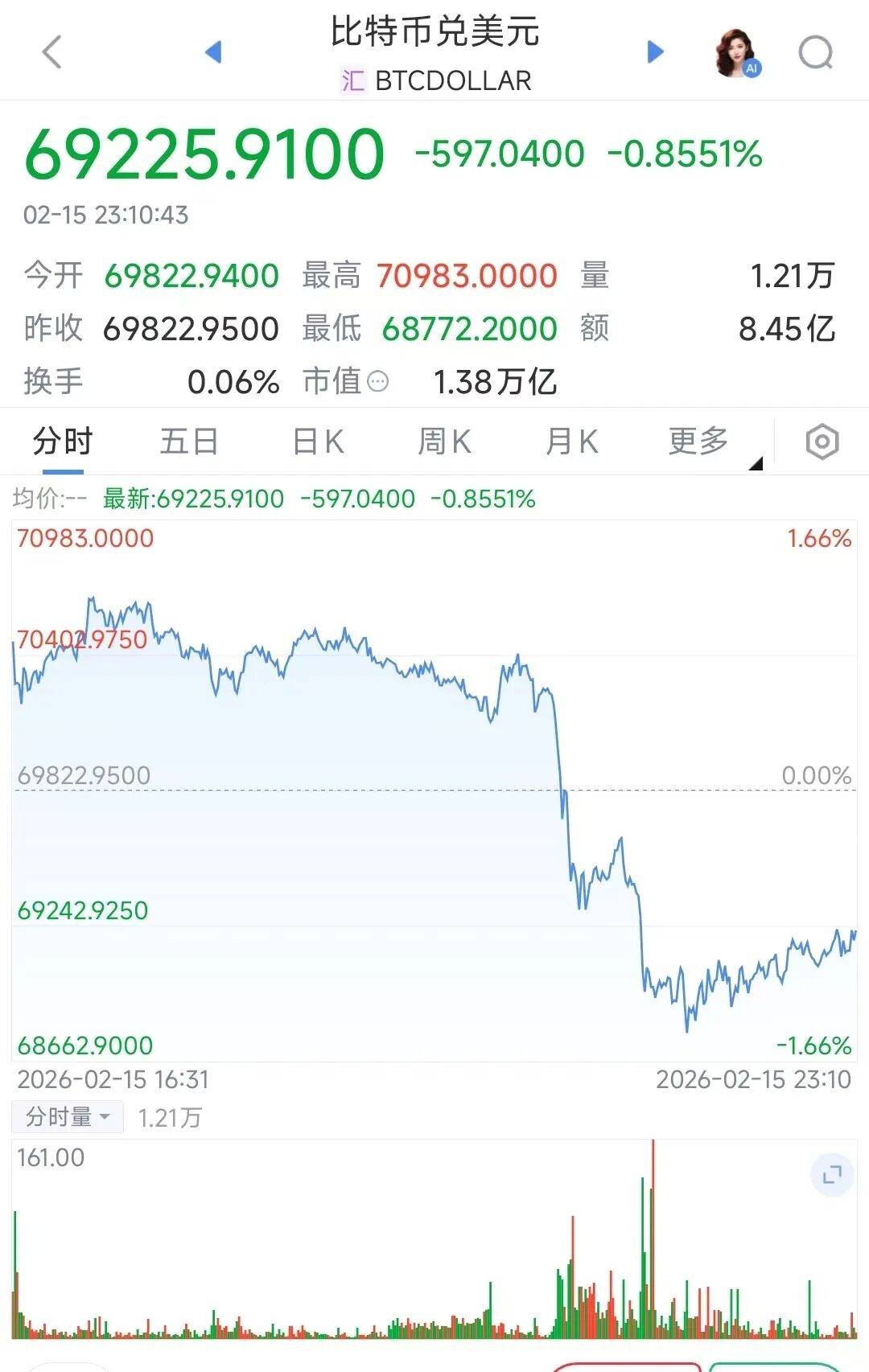 2026-02-16米兰体育,米兰体育官方网站,米兰体育APP下载2月15日,比特币价格继续剧烈波动,今日一度触及71000美元/枚的比特币