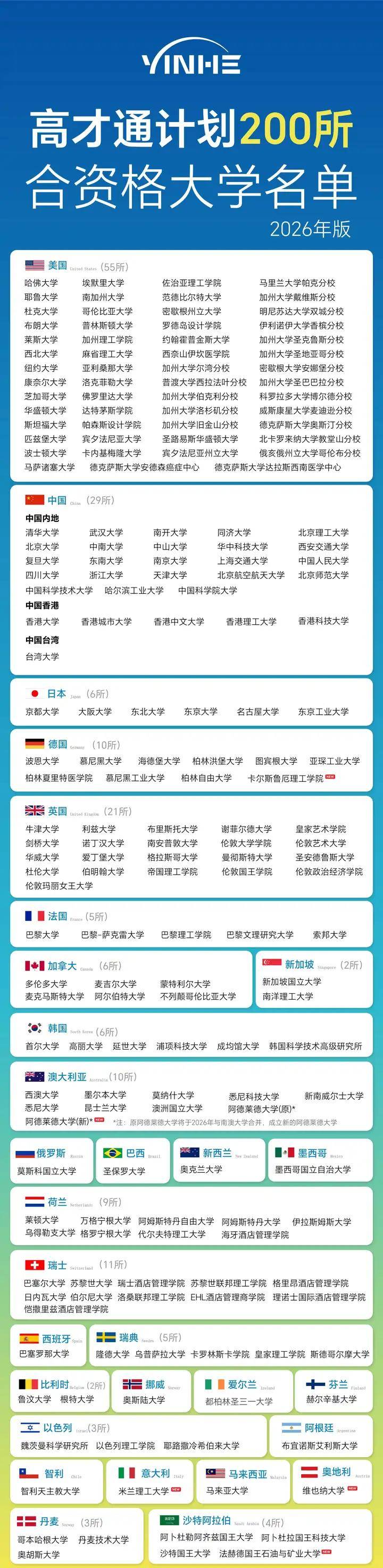 1、名单定向扩容,内地名校受青睐:合资格大学名单从最初的百强,历经2024年、2025年多次扩容,到2026年已覆盖全球200所顶尖院校;