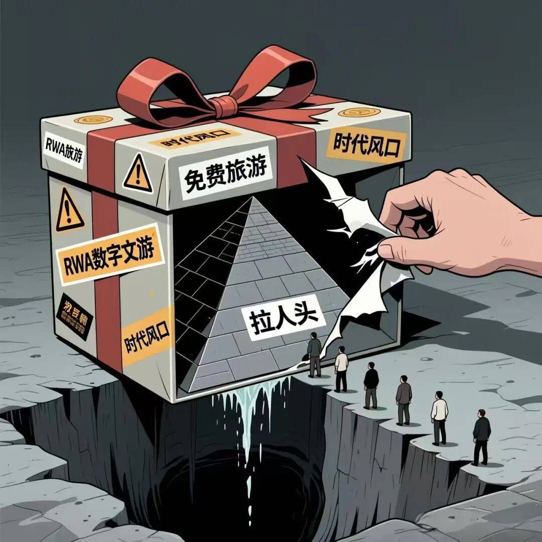 某机构以“RWA数字文旅基金”为名,引导投资者下载APP购买虚拟货币,通过“拉人头抽提成”发展下线,声称入会可免费旅游并获高额回报。该模式无任何实体文旅资产支撑,纯靠新投资者资金维持运转,涉嫌集资诈骗。