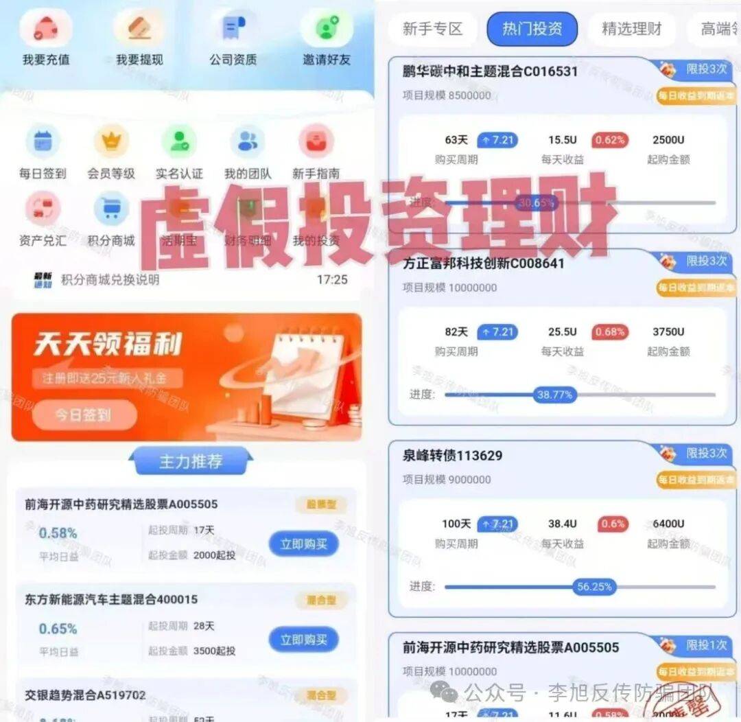 伪装成线上理财平台,让用户用USDT充值购买所谓的“理财项目”,承诺每日有收益,到期还本,收益率高得离谱。